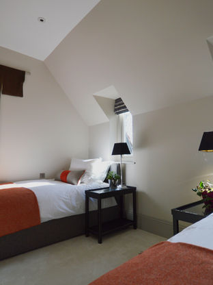A bright, double-aspect room with 2/3 single beds and access to the shared main bathroom with both shower and bath. A third single bed can be added.